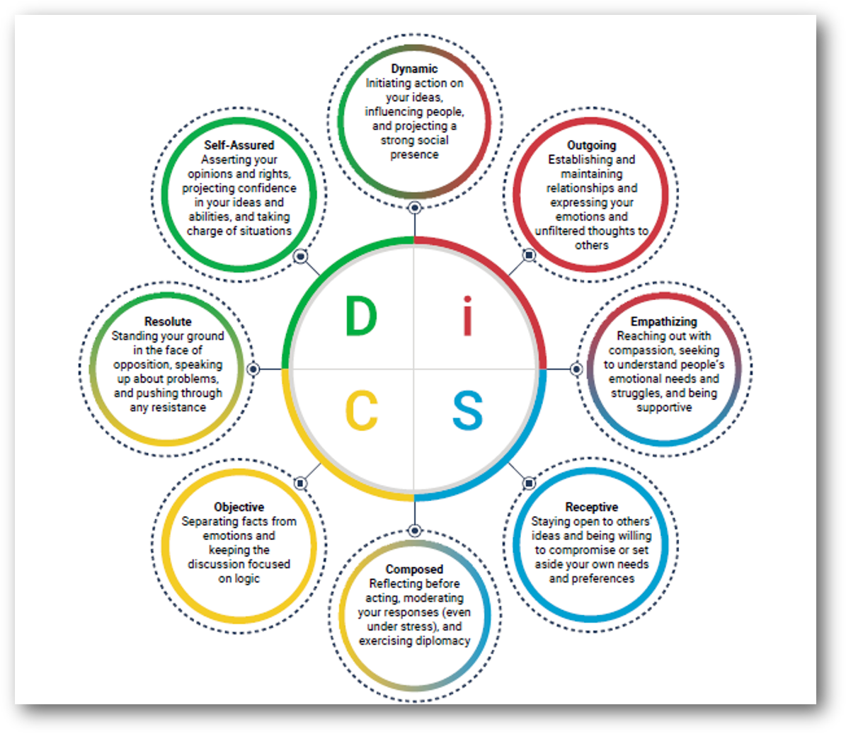 DiSC Agile EQ™ maps eight emotional intelligence mindsets onto the DiSC model, each describing a different instinctive way of showing up:
